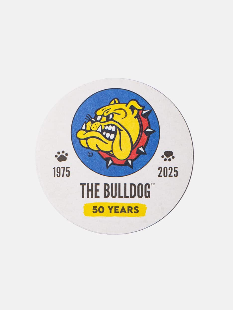 Celebrate 50 years of The Bulldog with this exclusive set of anniversary coasters, designed by the renowned artist Dadara. Made from high-quality pressed paper, these coasters are both durable and stylish, featuring vibrant and unique artwork that captures the essence of The Bulldog’s legacy.