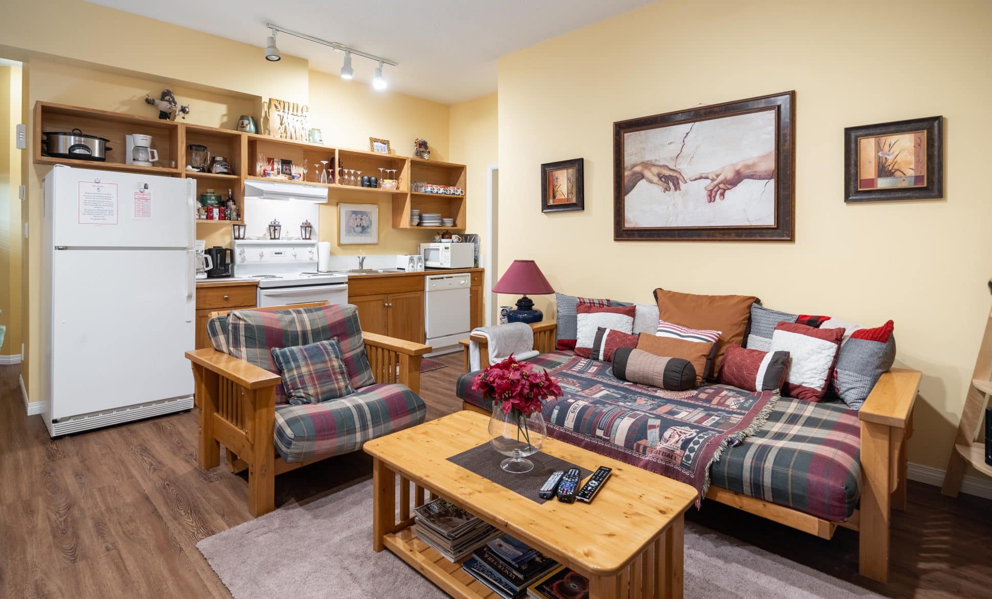 This pet friendly suite is located within a private 3 story home in Silver Star on the Upper Knoll Residential area. The 2 bedroom – 1 bathroom suite features all the comforts of home including a full kitchen, a cozy living room with a double pull out couch and an electric fireplace. Enjoy the large private deck with hot tub and a BBQ after a day of fun on the trails.