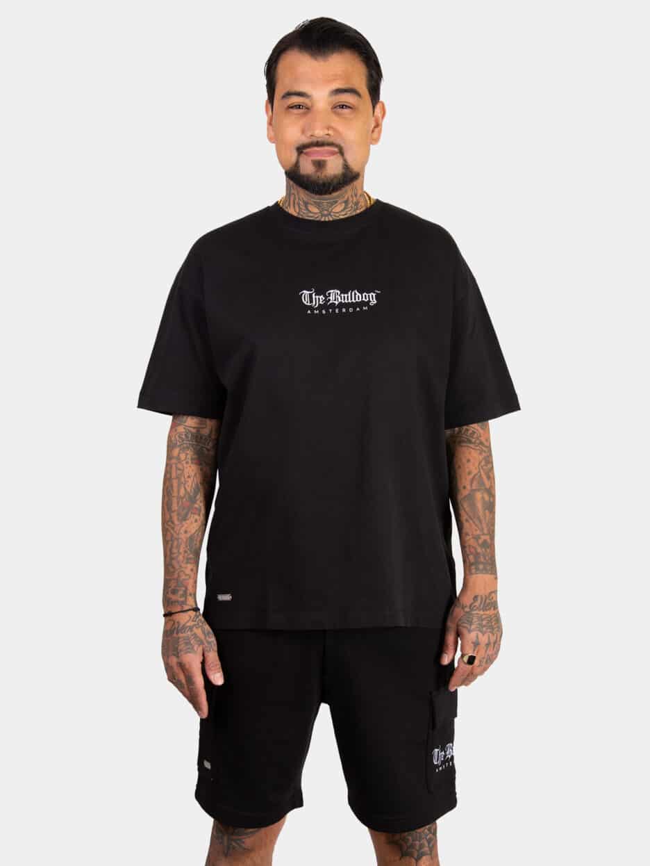 The Gothic Short in black comes with drawstrings, cargo pockets and a refined The Bulldog embroidery