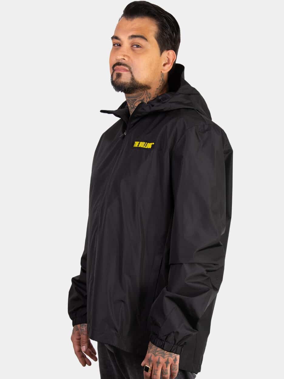 The Bulldog Windbreaker Jacket in Black. This Windbreaker is made from a lightweight material, which helps to trap heat close to your body.