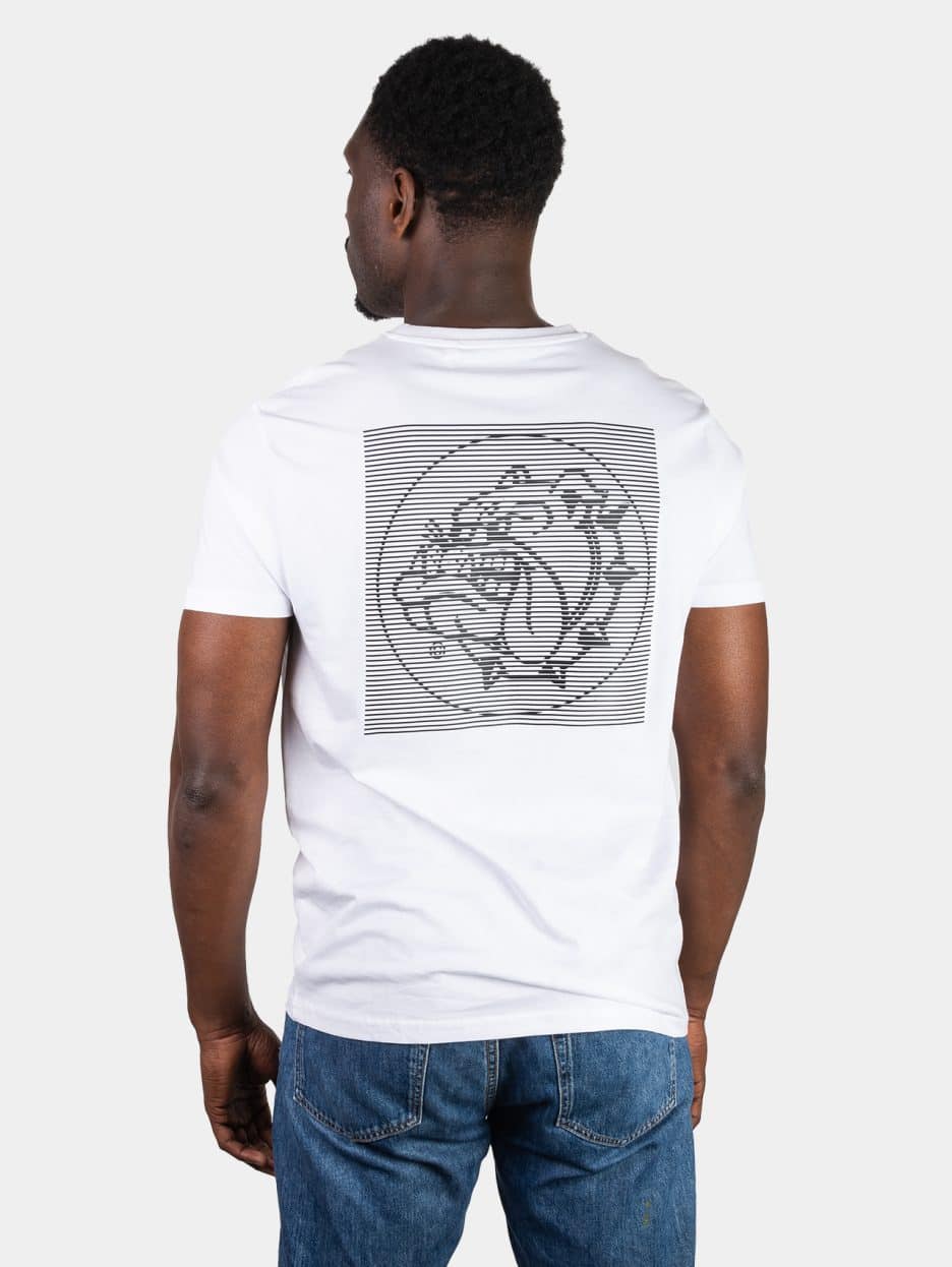 This regular-fit T-Shirt in White is designed for a true-to-size fit, ensuring maximum comfort. Made from 100% cotton, it features a high-definition rubber print with stripes for a stylish touch. The front showcases "The Bulldog" in bold lettering, while the back is adorned with The Bulldog Head design in black and grey, adding a striking detail to this versatile piece.