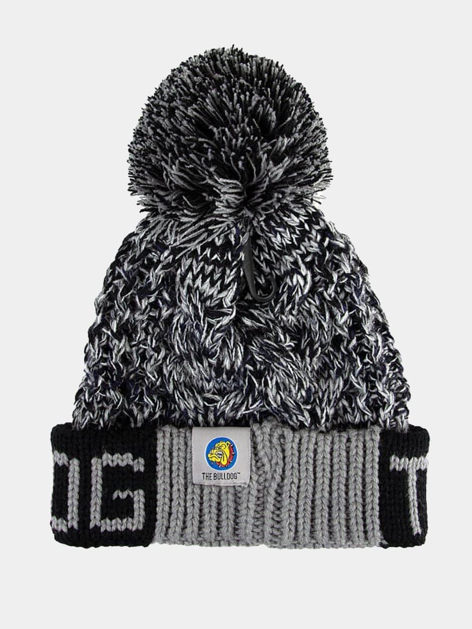The Bulldog Winter Beanie Black & Grey with a large pompom on top