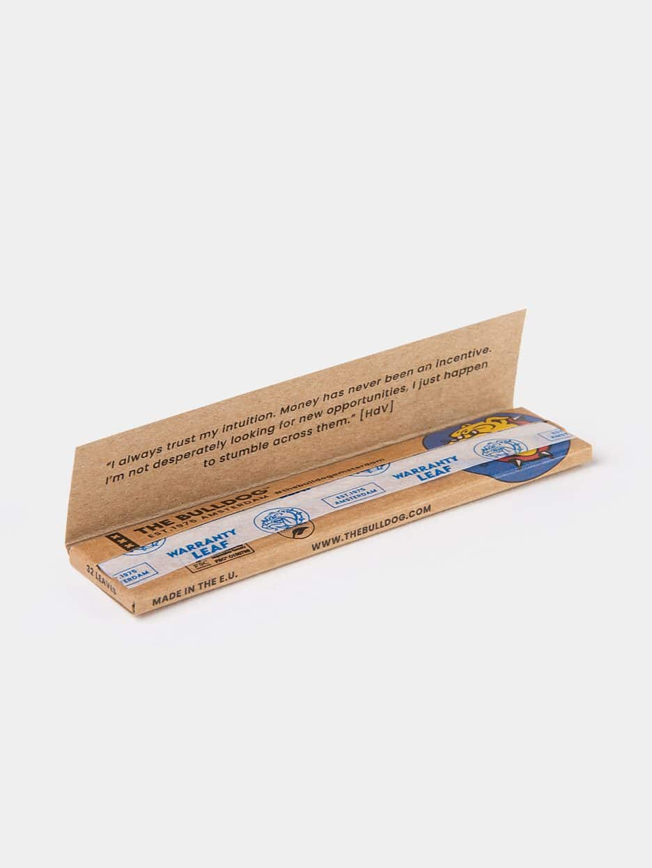The Bulldog Rolling Paper King Size Slim Unbleached is a quality slow burning paper made with a natural Arabic gum line. It contains 33 papers packaged in a biodegradable booklet.