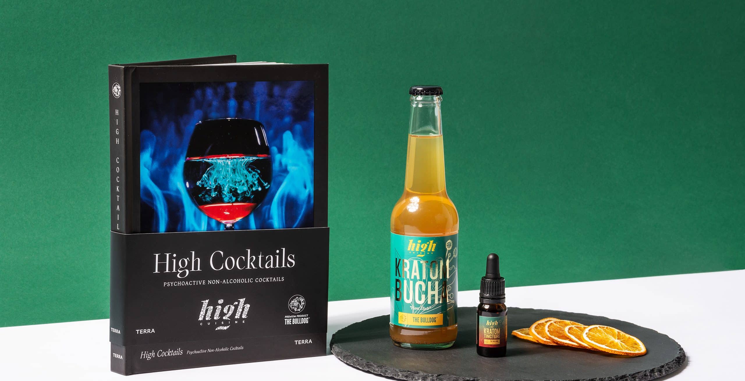 After years of research, development and testing – in close cooperation with scientists and herbal experts – the team at High Cuisine found the Kratom plant to be the best ingredient for a new psychedelic and all-natural mixture. This resulted in a new line of products, with even a recipe book to create your own non-alcoholic psychoactive cocktails.
