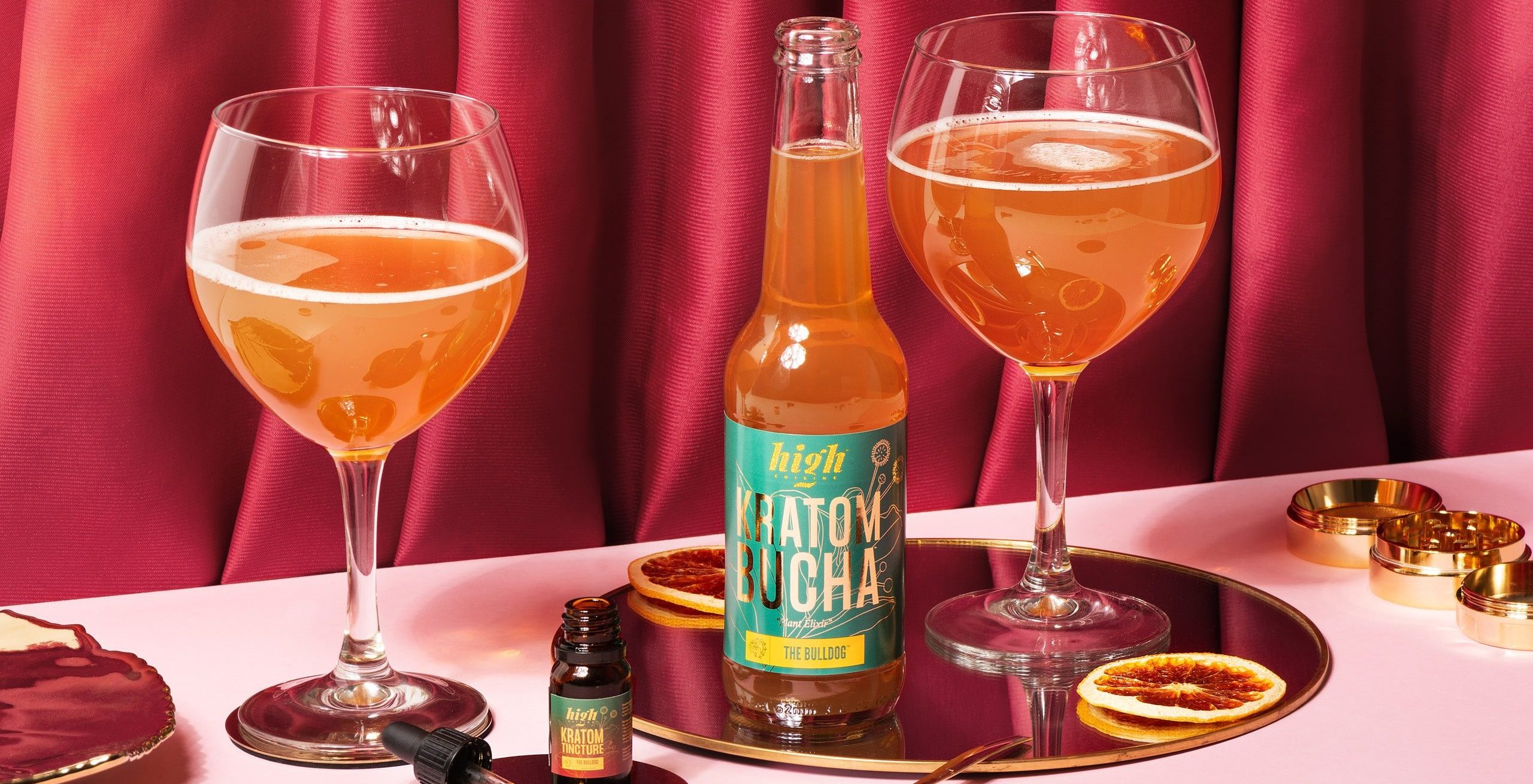 The research team of High Cuisine has been researching the effects of special plants and herbs on the body for over 5 years. After our chefs combined this with haute cuisine on several occasions, we began to explore other combinations. The non-alcoholic beverage market has been growing rapidly for some time, from the rise of 0.0% beer to large luxury mocktail (virgin cocktails) bars in the US. We saw the opportunity to use our knowledge to develop a non-alcoholic drink with plant-based ingredients, that you still feel. After a long development process funded by The Bulldog with many tastings, tests and legal checks, the plant Kratom emerged as the winner as an active ingredient, in combination with the hip and healthy Kombucha drink.