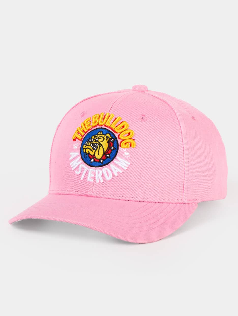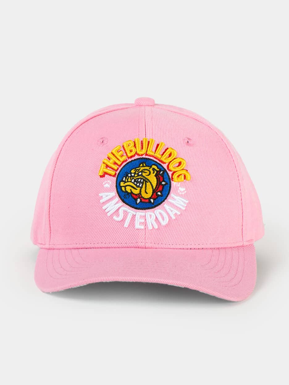 The Bulldog Baseball Cap in Pink has a full colour Original 2D logo on the front and a checkered design on the inside.