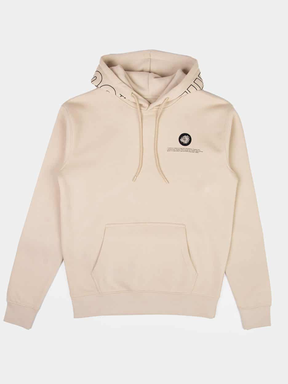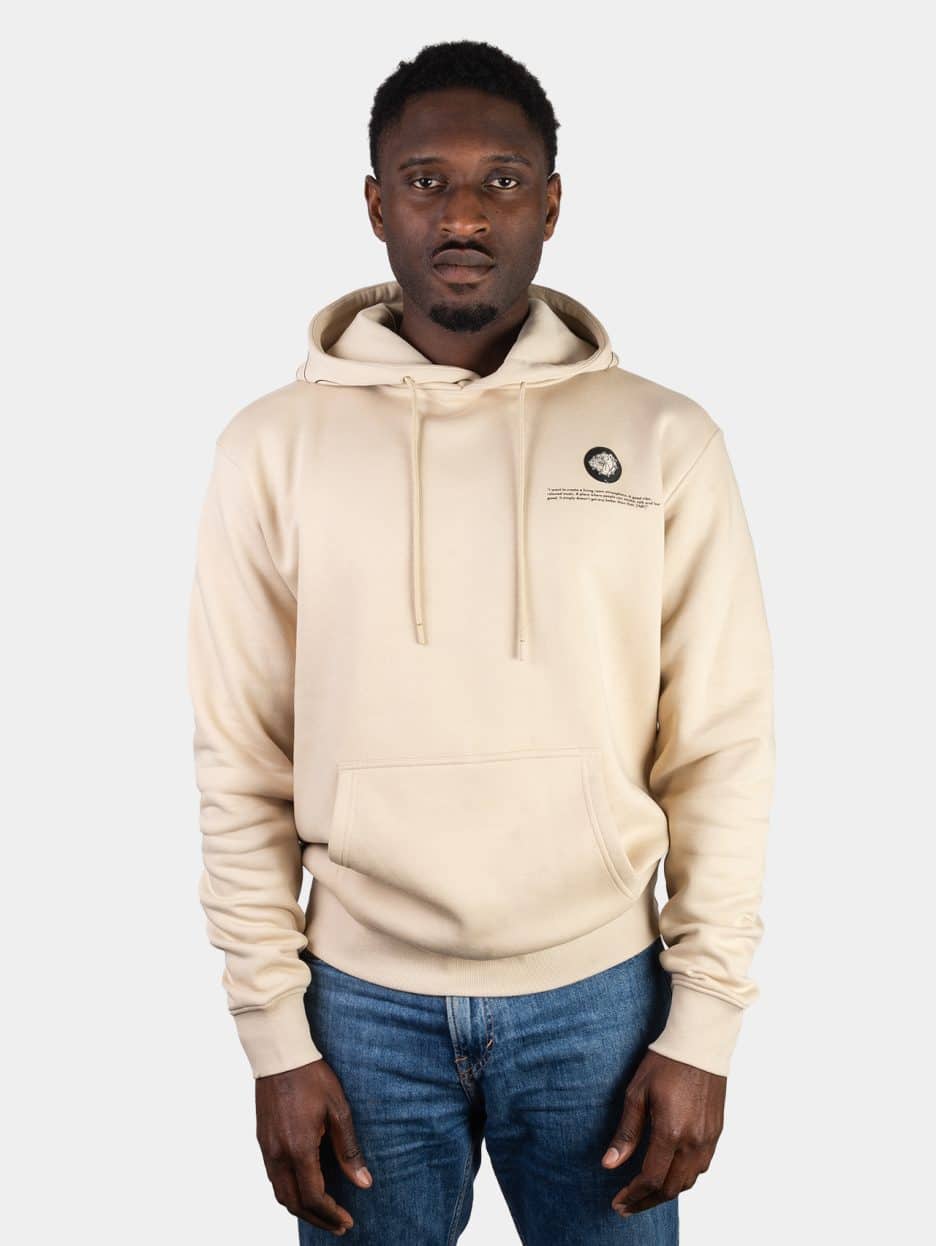 The Bulldog Outline Hoodie in Nude Badge features the iconic quote from the company's founder printed on the chest, with the international logo displayed as a badge above it. The black Bulldog outline logo is also printed on the hood for added detail. Made from a soft blend of 80% cotton and 20% polyester, it offers comfort and durability. The design includes a spacious hood, kangaroo pockets, and an adjustable drawstring. This unisex hoodie comes in a stylish nude/beige color, making it a versatile addition to any wardrobe.