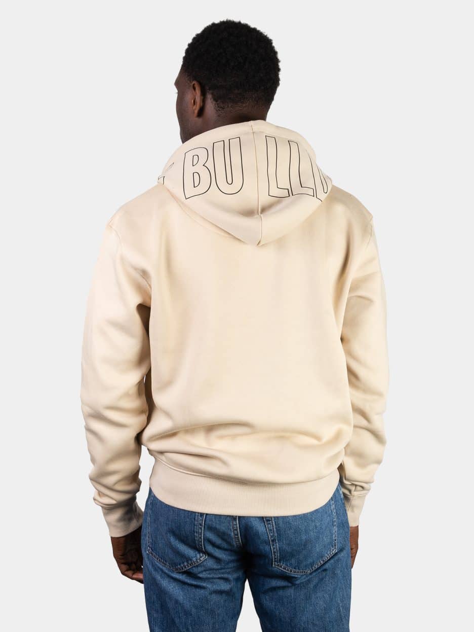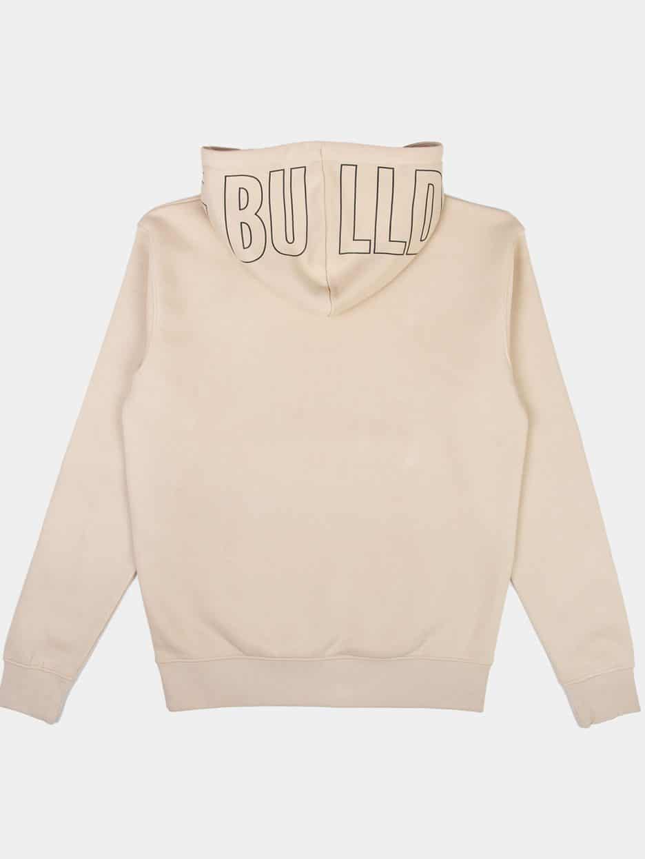The Bulldog Outline Hoodie in a Nude/Beige colour has a hood, a badge on the chest with our international logo, kangaroo pockets and a drawstring. This is a unisex item.