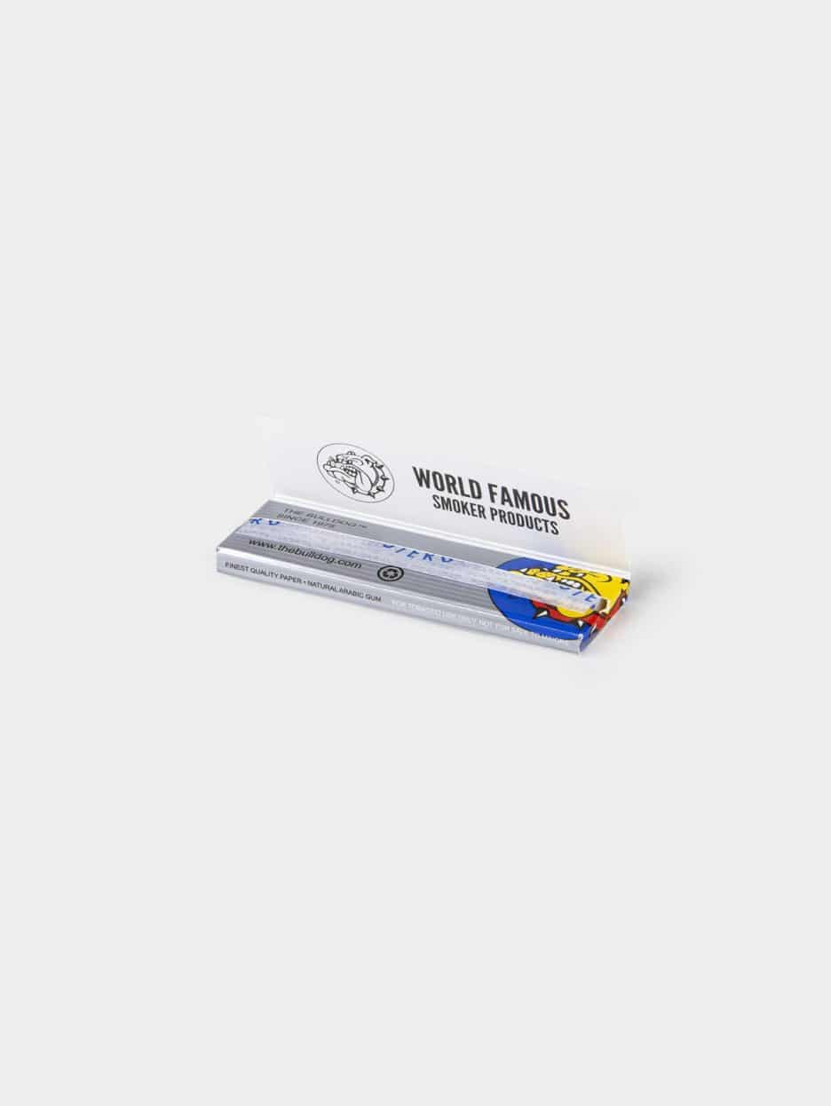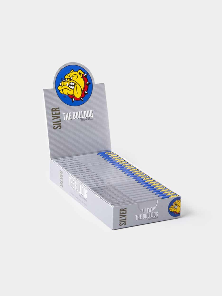 The Bulldog Paper Silver is a short rolling paper with a natural Arabic gum line.
