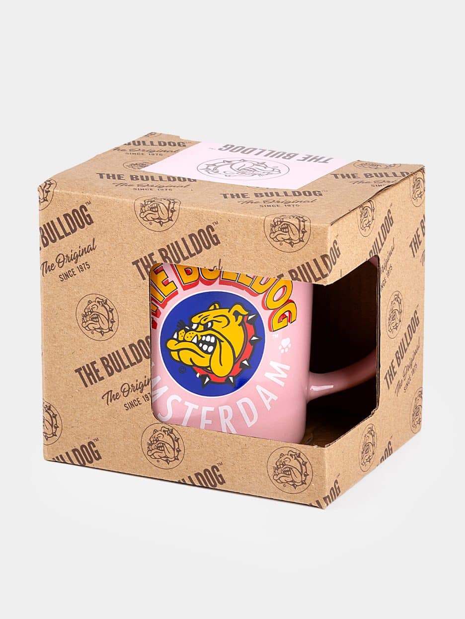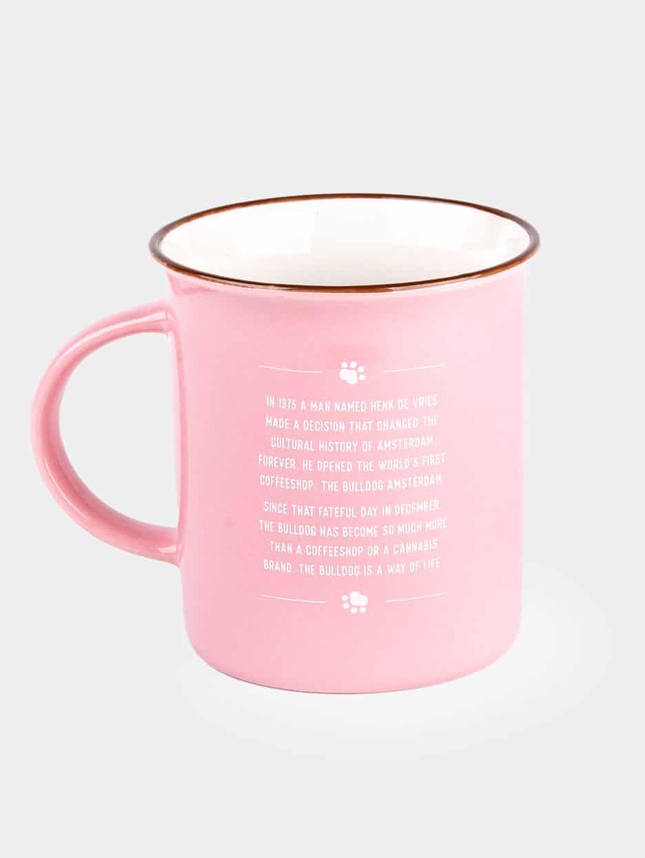The stylish new Camping Mug Pink has a beautiful finish. Printed on the mug is a full colour logo of The Bulldog and a bit of text describing the start of the coffeeshop.