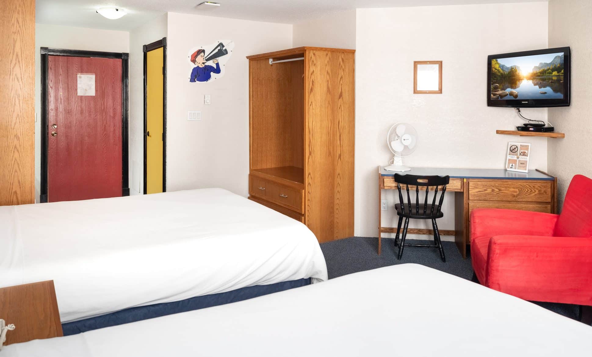 Our Standard Rooms with two queen beds are ideal for friends travelling together or families up to four people. Children under the age of 14 travelling with their parents stay for free. Please remember our rates are based on double occupancy. A charge of $20.00 + Tax per extra adult, per night will apply. Book this room and you will receive a 10% discount when you dine at The Grand Cafe or DiVine Cellar! (Discount applies on food and nonalcoholic beverages)
