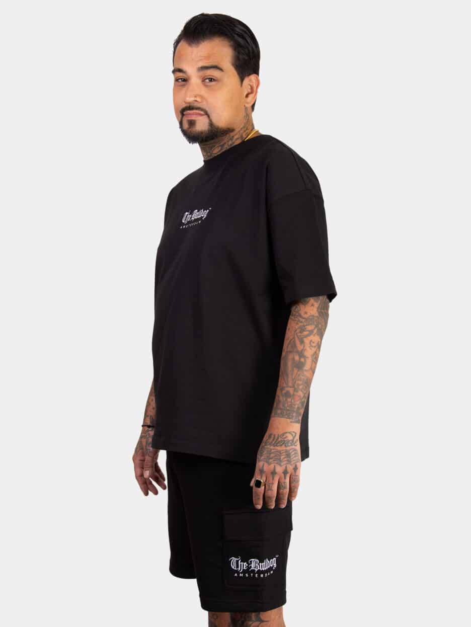 The Gothic Short in black comes with drawstrings, cargo pockets and a refined The Bulldog embroidery