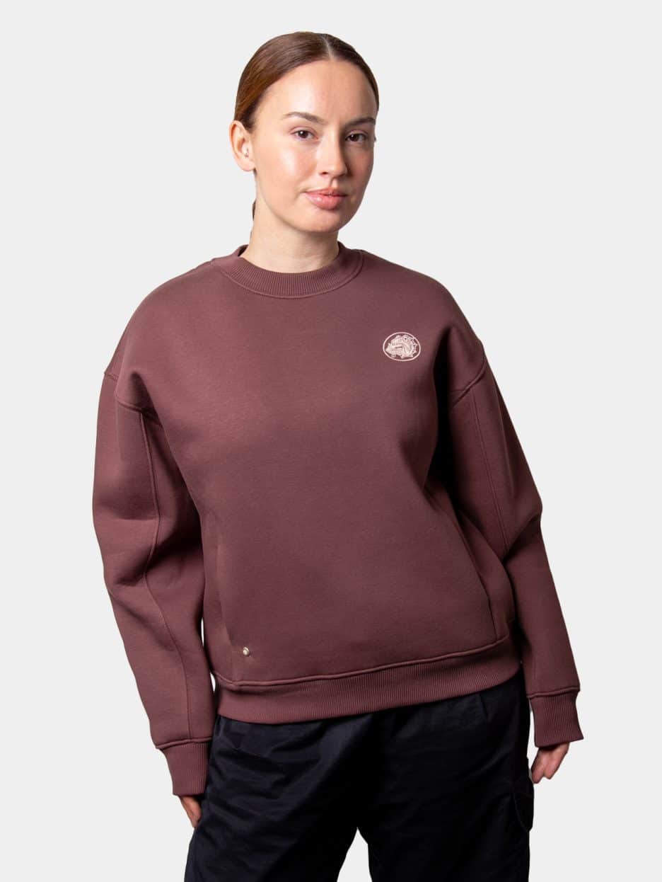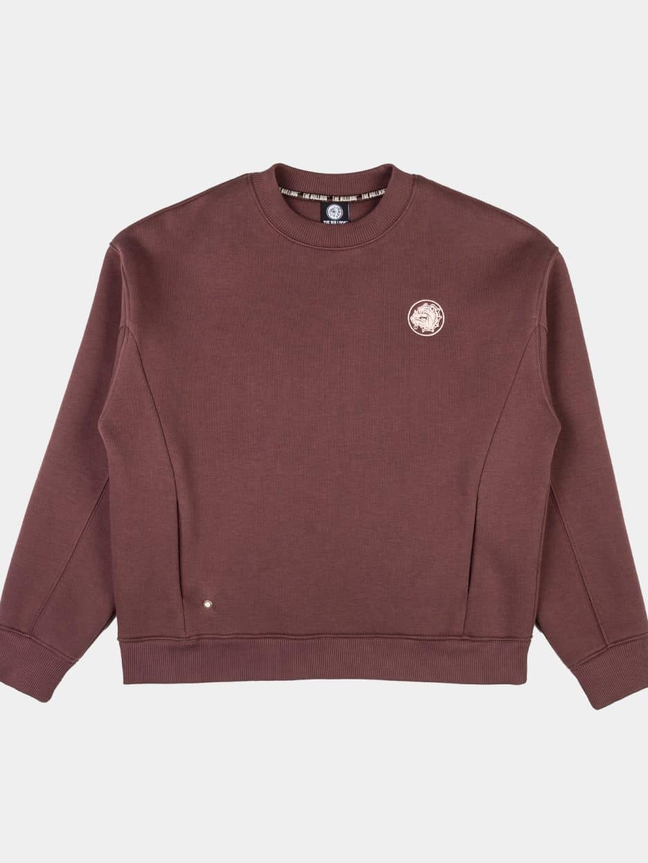 The Bulldog Urban Crew Sweater for Women—a stylish and comfortable crew neck sweater in a maroon colour with beige details. Made from a comfortable blend of 70% cotton and 30% polyester.