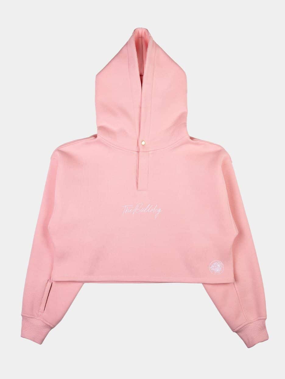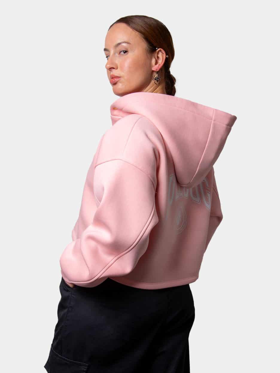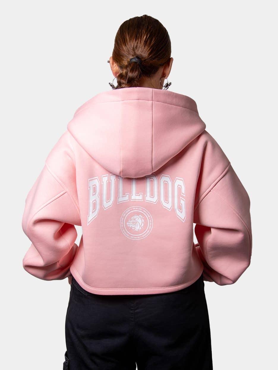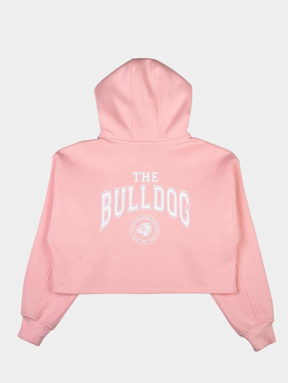 The Bulldog Cropped College Hoodie—a sporty, stylish crop top, made from a comfortable blend of 70% cotton and 30% polyester.