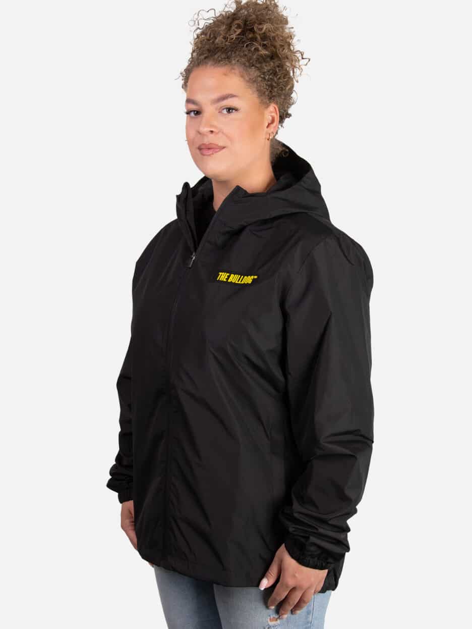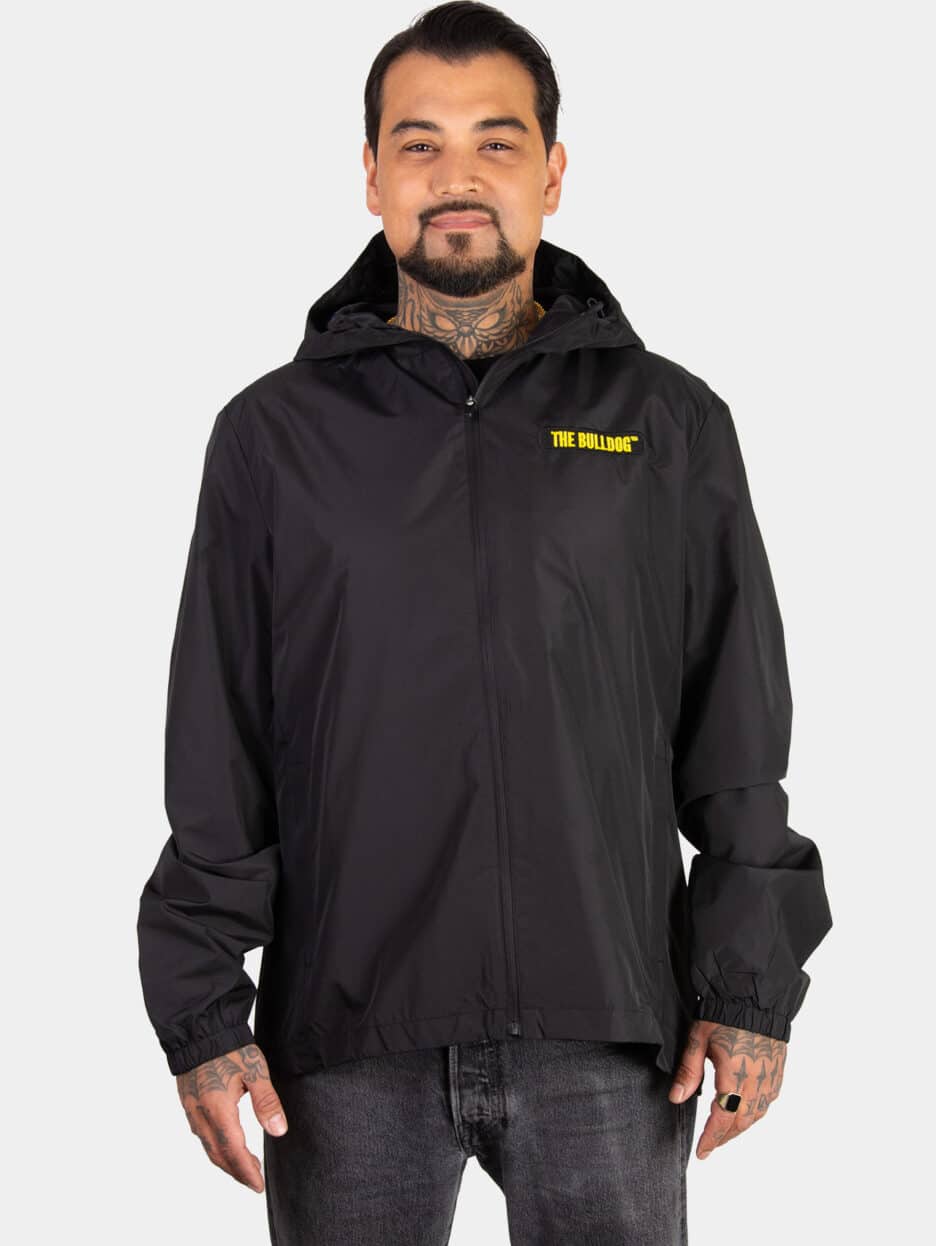 The Bulldog Windbreaker Jacket in Black. This Windbreaker is made from a lightweight material, which helps to trap heat close to your body.