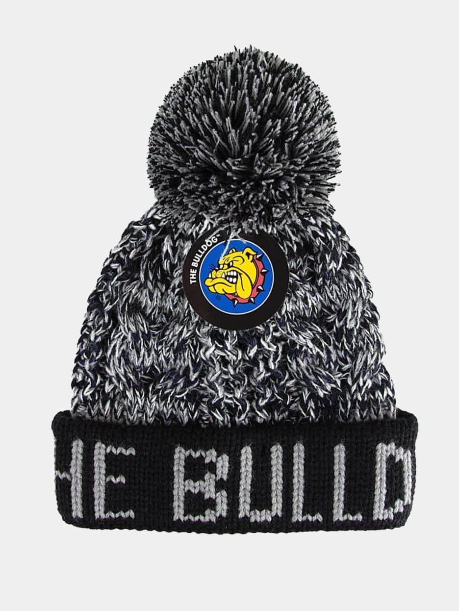 The Bulldog Winter Beanie Black & Grey with a large pompom on top