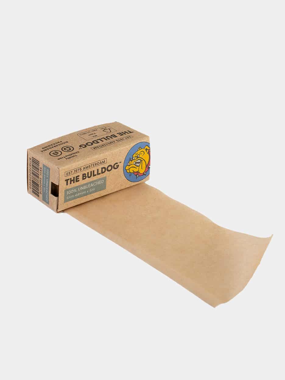 The Bulldog Slim Rolls Unbleached ultra-thin slow burning smoking papers measure 5 metres in length and 44mm in width. The papers are 100% unbleached, unrefined, chlorine free, vegan and non-GMO.