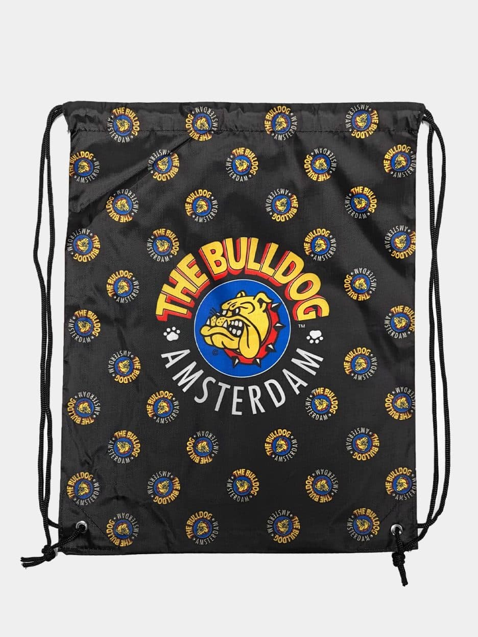 The Bulldog String Bag Logo All Over in Black. Designed with our original logo in full colour all over the bag. A small, lightweight bag that is adjustable with two strings.