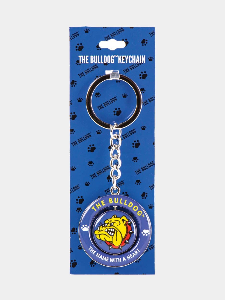 The Bulldog Keychain Flip Logo design with the logo that swirls around add colour to your keys.