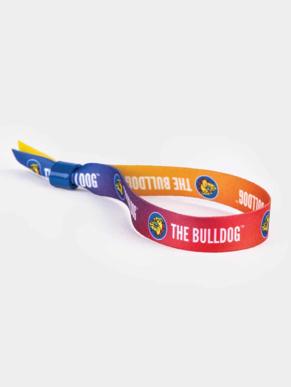 The Bulldog Festival Bracelet Rainbow is a sturdy and stylish accessory. The bracelet has the iconic Bulldog head and name along the band.