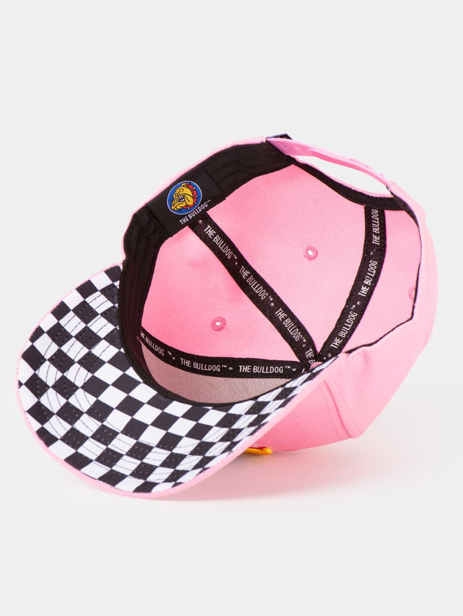 The Bulldog Baseball Cap in Pink has a full colour Original 2D logo on the front and a checkered design on the inside.
