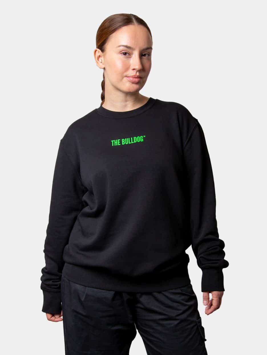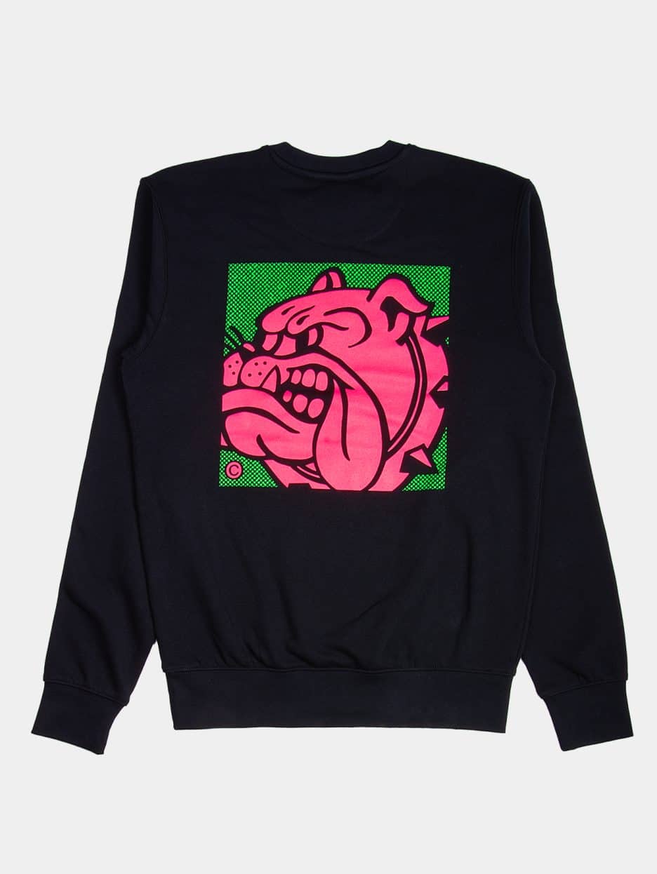 The Neon Sweater Head in Pink is crafted from 85% organic cotton and 15% recycled polyester, combining sustainability with style. It features a bold screen-printed neon Bulldog head design on the back and "The Bulldog" text on the chest. For lasting quality, we recommend washing it inside out and air drying.