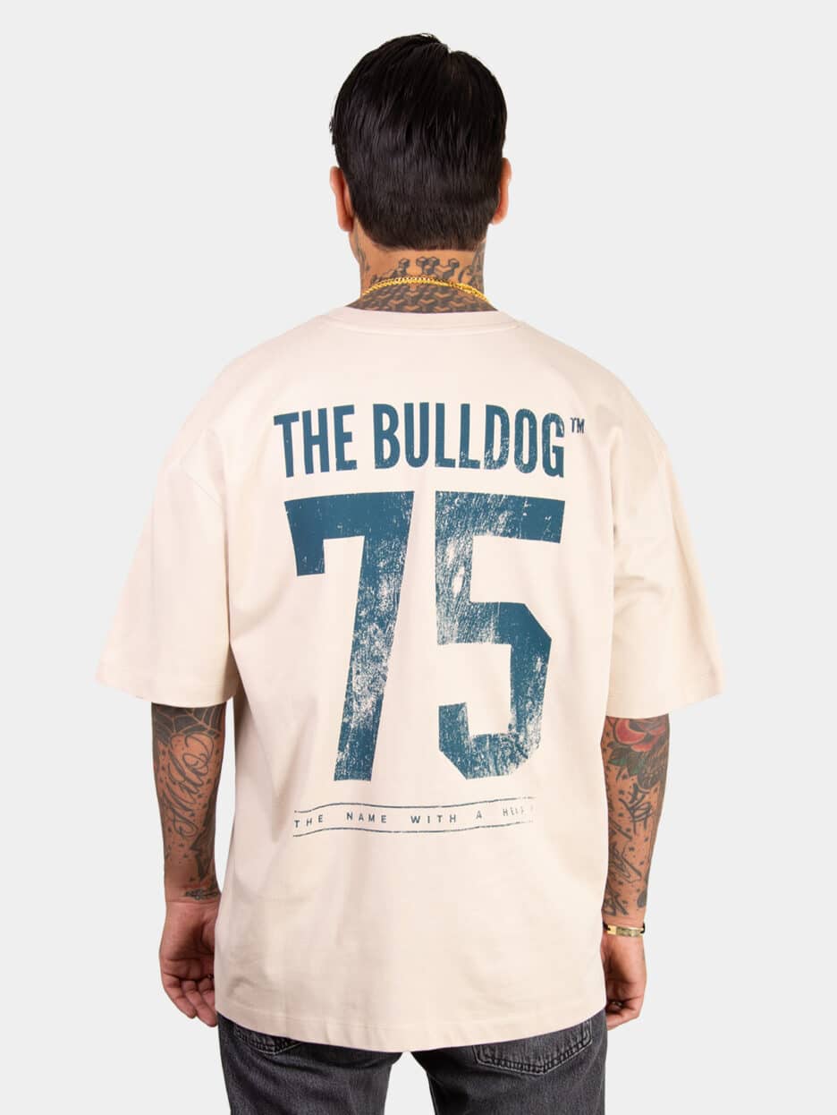 Oversized t-shirt made from 100% heavyweight cotton, featuring an embroidered Bulldog logo on the front and a one-color The Bulldog 75 print with the slogan The Name with a Heart on the back.